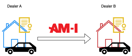 Na het ondertekenen van een overeenkomst tussen AM-i, Dealer A en Dealer B word er een koppeling gemaakt tussen de twee dealers op vestigingsniveau. Dealer B zal gedurende de overeenkomst de voertuigen van Dealer A zichtbaar krijgen binnen haar omgeving. Dealer B kan deze voertuigen als gebruikelijk adverteren en zelfs onderdeel laten uitmaken van het automatische proces. Deze koppeling wordt gelegd tussen twee verschillende vestigingen.