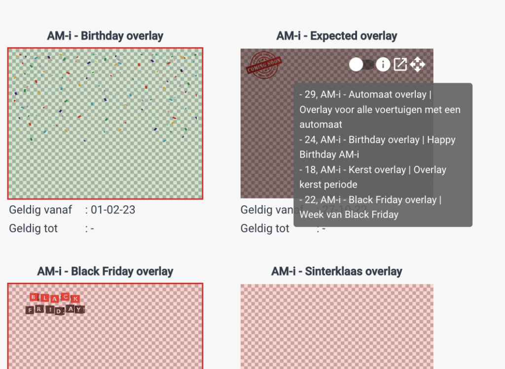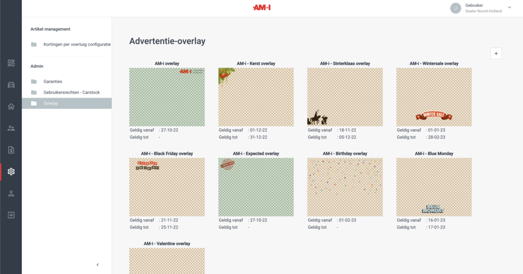 Het versturen van uw favoriete Overlay en afhankelijk zijn van AM-i support voor het instellen van deze overlays behoort tot het verleden, vanaf vandaag is het mogelijk om volledig automatisch een Overlay in te stellen op basis van je eigen wensen voor de huidige voorraad maar ook de toekomstige. Graag introduceren wij het eerste onderdeel van onze Marketing suite: de Overlay functionaliteit.