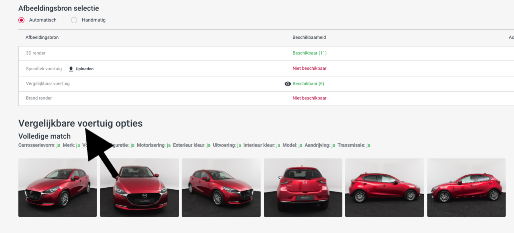 Door op “Vergelijkbare voertuig opties” te klikken open je het bronvoertuig
