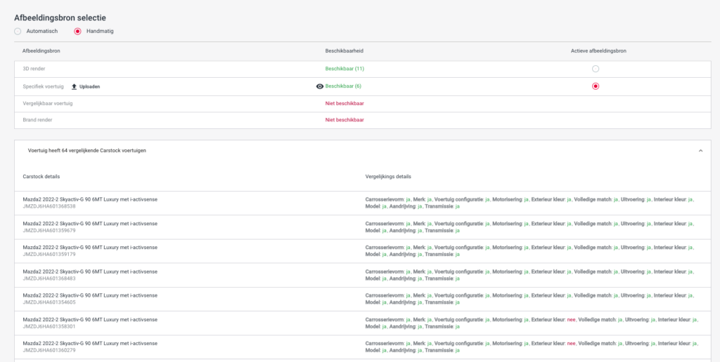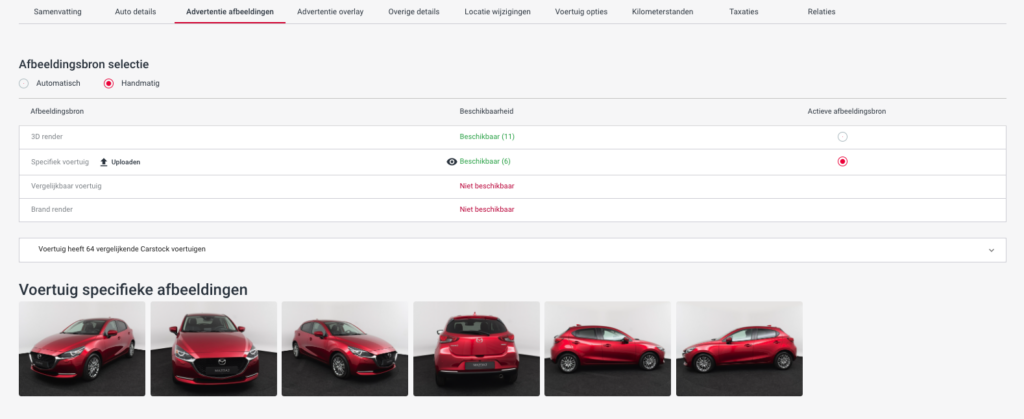 Met name in grote omgevingen met veel hergebruikte afbeeldingen kan het voorkomen dat iemand een wijziging wilt doen in de volgordelijkheid van afbeeldingen, ook kan het gebeuren dat afbeeldingen liever niet gebruikt worden. Om deze reden hebben wij op Vergelijkbaar voertuig niveau functionaliteit toegevoegd.
