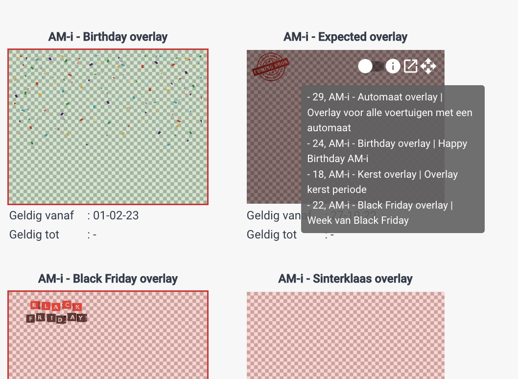 Indien er vragen zijn omtrent de werking van de Overlay functionaliteit, neem dan gerust contact op met support@am-i.nl