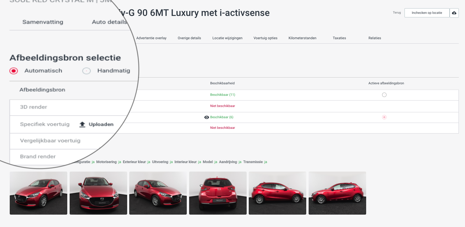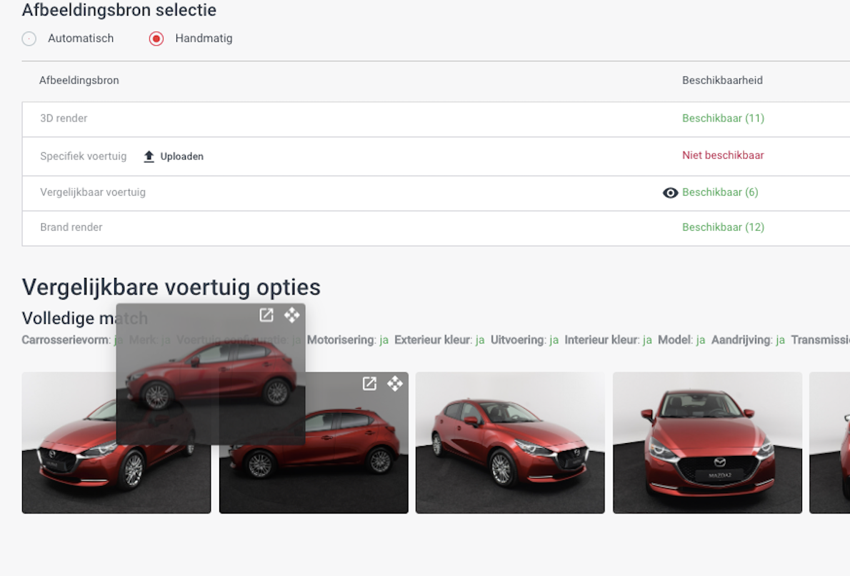 Met name in grote omgevingen met veel hergebruikte afbeeldingen kan het voorkomen dat iemand een wijziging wilt doen in de volgordelijkheid van afbeeldingen, ook kan het gebeuren dat afbeeldingen liever niet gebruikt worden. Om deze reden hebben wij op Vergelijkbaar voertuig niveau functionaliteit toegevoegd.