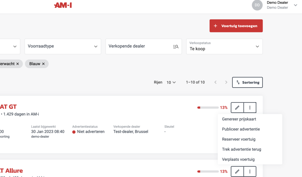 • Publiceer advertentie – adverteert het voertuig vanuit de Carstock lijst