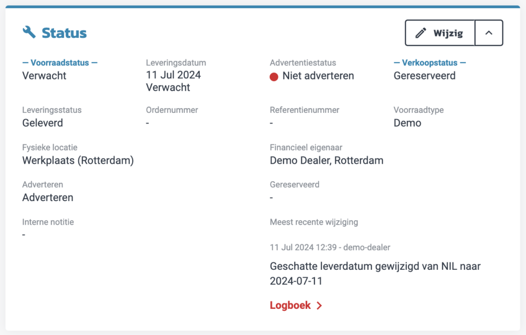 Het status segment zijn automatisch geupdate velden vanuit de importer. Deze velden zijn aanpasbaar maar zullen indien de importbestanden andere waarden kennen terug overschreven worden. Hierover meer onder het kopje Handmatig vs Automatisch